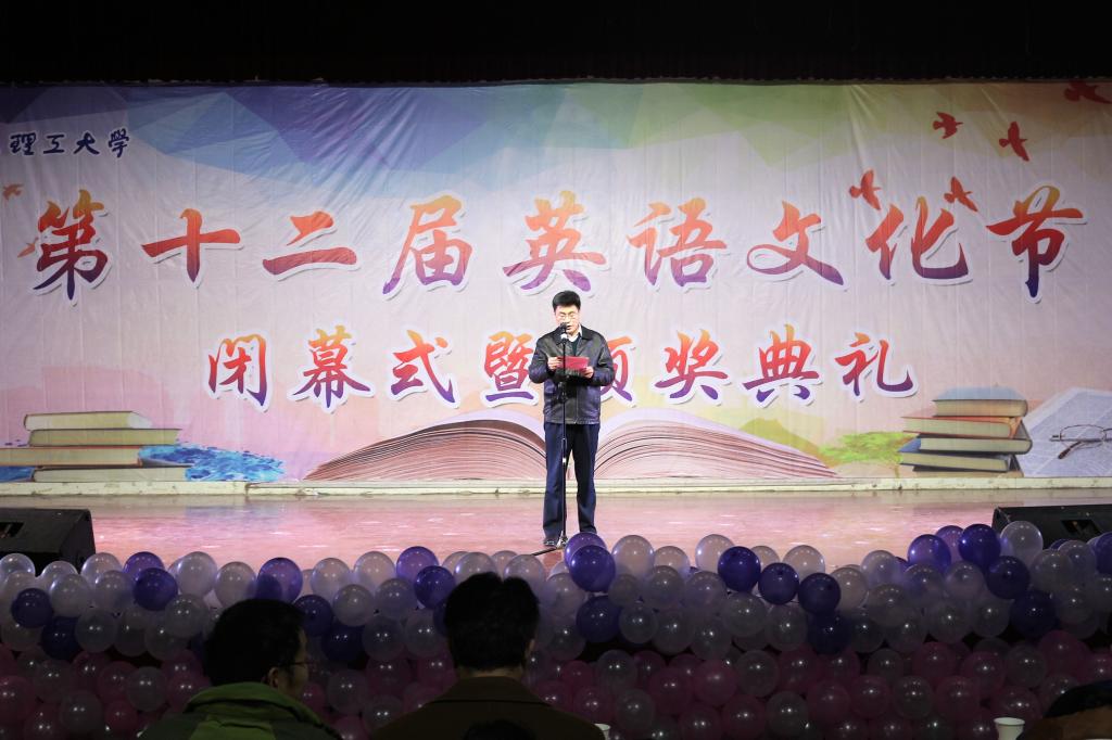 12月5日晚,我校临沂校区第十二届英语文化节闭幕式暨颁奖典礼在实训中心二楼报告厅举行。校区党委常务副书记李国涛出席并讲话,学校理学院副院长、校区基础部主任戚云松、基础部副主任李齐,学生工作部副主任、团委书记刘宗庆出席并为获奖学生颁奖。