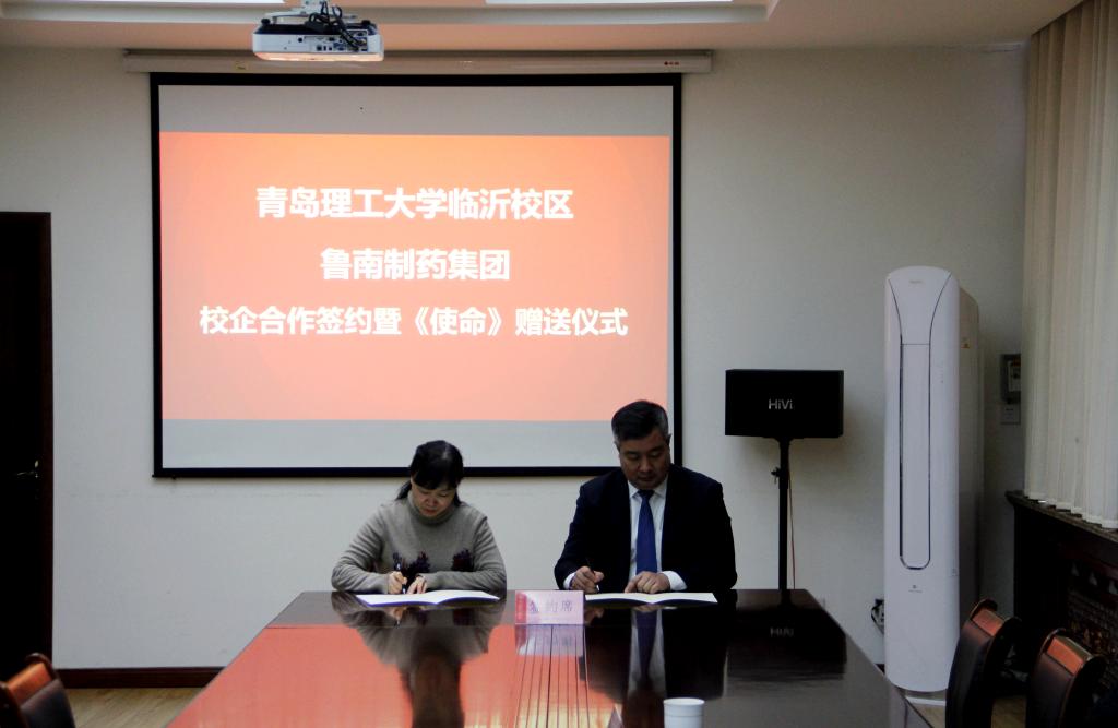 12月13日下午,我校临沂校区与鲁南制药集团股份有限公司校企合作签约暨《使命:时代楷模赵志全》赠送仪式在办公楼二楼会议室举行。校区管理办公室主任范学工出席并主持,校区管理委员会副主任刘清晨、鲁南制药集团副总经理李宝杰、劳动人事部招聘总监宋祥云、学校教务处副处长李祥城、学校管理工程学院副院长、校区管理工程系主任赵辉和相关部门负责同志、教师代表参加仪式。