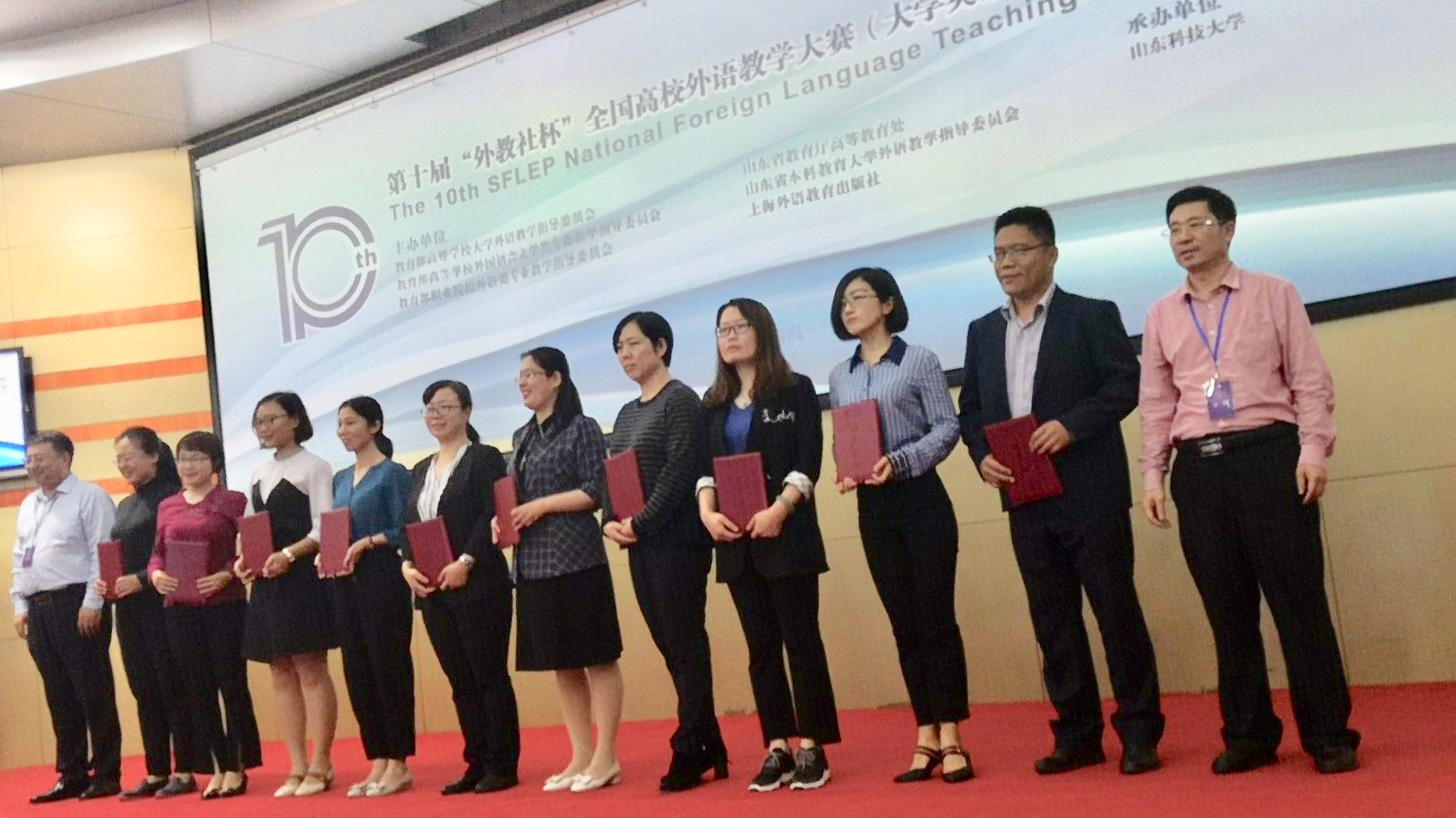 5月18日至19日,第十届“外教社杯”全国高校外语教学大赛山东分赛区复赛和决赛在山东科技大学举行。我校人文与外国语学院谢文静老师和王华敏老师分别获得(视)听说课组二等奖和综合课组三等奖。