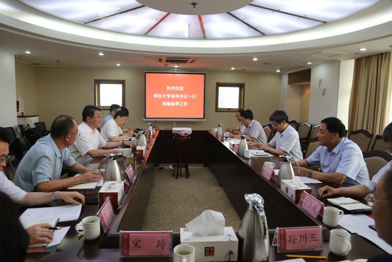6月26日下午,烟台大学党委书记张伟率领该校党委副书记张殿臣,党委常委、纪委书记周胜良以及学校办公室、党委宣传部、党委教师工作部等部门负责人来我校调研。校党委书记王亚军、校长谭秀森,党委常委、纪委书记尹东峰与张伟书记一行见面交流,党委宣传部、组织部、统战部、党委办公室、党委教师工作部等部门负责人参加调研座谈。