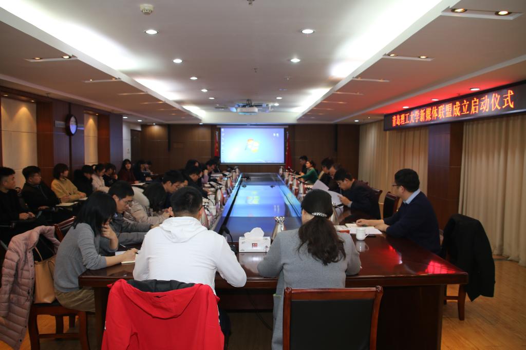 12月9日下午,永利集团3044官网欢迎您新媒体联盟成立启动仪式在图书科技楼1908会议室举行,党委副书记李国华出席会议并讲话,党委常委、党委宣传部部长陈伟主持会议。学生处、团委负责人,学校各新媒体平台的主管领导、指导教师及学生负责人等参加。