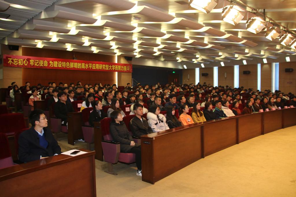 12月11日,第二届荣华班成立大会暨荣华奖学金发放仪式在市北校区报告厅举行。校党委常委、副校长沈文青出席仪式并讲话。荣华建设集团有限责任公司党委副书记、工会主席田禾兴,人力资源总监郎洪章,人力资源副总监吕晓莉,学生处处长、创新创业学院院长焦红良,教务处处长田艳兵,合作发展处副处长张国昌参加。仪式由创新创业学院常务副院长李忠晓主持。