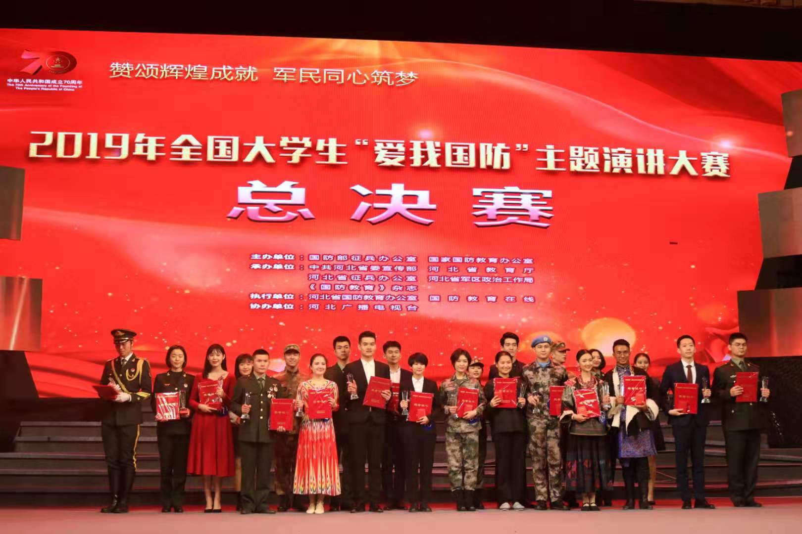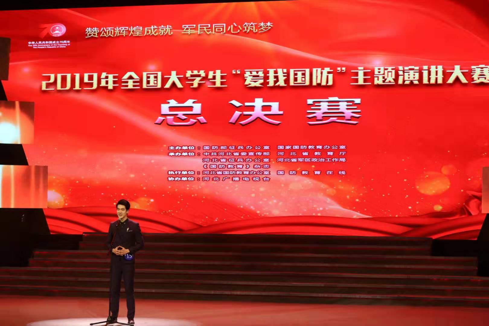 12月10日,由国家国防教育办公室主办,河北省委宣传部、省教育厅、河北省征兵办公室、省军区政治工作局、《国防教育》杂志承办,河北省国防教育办公室和国防教育在线共同执行的2019年“爱我国防”全国大学生主题演讲比赛总决赛在河北石家庄举行。我校环境与市政工程学院学生高原代表山东省参加了比赛,获得了全国总决赛二等奖。