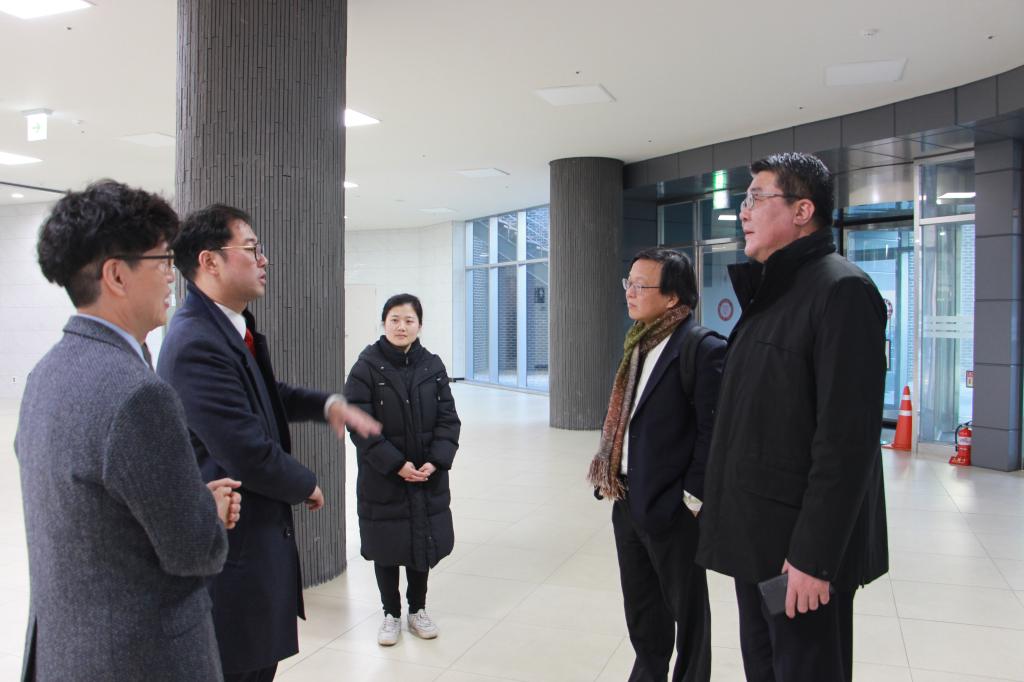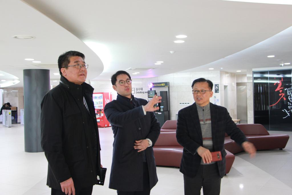 在光云大学,王亚军一行与刘智相校长等人就双方已经开展的中韩合作项目进行了总结,并就扩大合作领域、专业,加强深化合作,加强师生交流等方面进行了深入的探讨,取得了广泛的共识。双方一致认为,两校要以中韩合作建筑学项目为基础,积极扩展合作领域,在人工智能、物联网等方面加强合作。