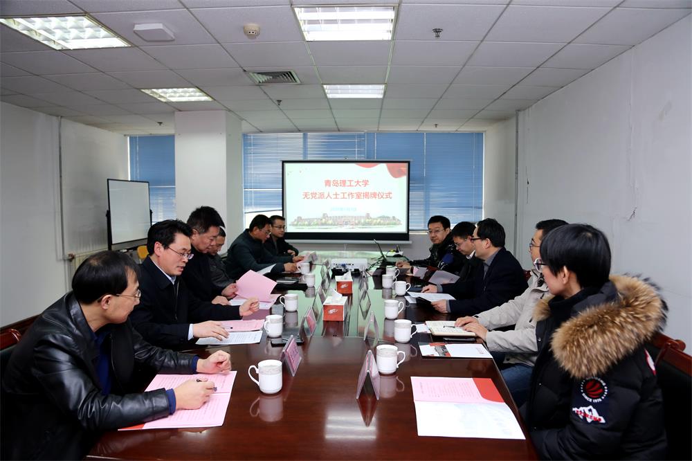 1月3日,学校举行无党派人士工作室揭牌仪式。青岛市委统战部五处处长周兴宏出席仪式,校党委副书记李国华,校党委常委、统战部部长王维及无党派人士工作室主持人许从宝、兰红波教授及工作室成员代表参加仪式。