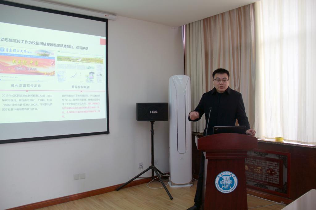 1月9日,临沂校区在办公楼二楼会议室分别召开了2019年度部门、系(部)及管理岗位人员考核暨党组织书记抓基层党建和履行全面从严治党责任述职评议考核会议。学校党委副书记、临沂校区党委书记李国华出席会议并讲话,校区领导班子成员、各党总支(直属党支部)书记、部门系(部)负责人、教师代表参加会议。校区党委常务副书记李国涛主持会议。
