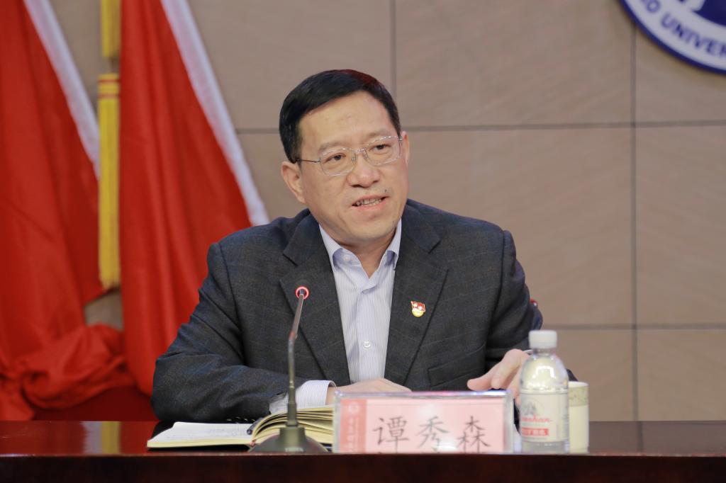 谭秀森在主持会议时表示,“不忘初心、牢记使命”没有停顿点,没有休止符,永远在路上。结合韩斌同志、王亚军同志讲话和会议精神的贯彻落实,谭秀森强调,一要坚持不懈强化理论武装。持续推动学习贯彻习近平新时代中国特色社会主义思想往深里走、往实里走、往心里走,不断夯实守初心、担使命的思想基础。各级党组织要结合工作实际,及时跟进学习,常学常新、学深悟透、融会贯通,更好地运用党的创新理论武装头脑、指导实践、推动工作。二要善始善终抓好整改落实。严格按照《整改落实方案》逐条逐项狠抓整改,持续抓好专项整治,坚持长效整改,将实践中行之有效的做法及时上升为可操作、能执行的制度,运用到长期的实践工作中,切实以师生满意、事业发展作为评价整改落实成效的标准,认真做好整改落实情况“回头看”工作。三要巩固成果聚力学校发展。要认真落实主题教育的总要求和根本任务,聚焦培养社会主义建设者和接班人这一根本任务,把牢守初心、担使命的着力方向,紧扣学校改革发展的突出问题和师生反映强烈的热点难点问题,按照第三次党代会确定的目标任务,凝心聚力推进“十大工程”,以只争朝夕、奋发有为、攻坚克难的精神状态,加快推进特色鲜明的高水平应用研究型大学建设。