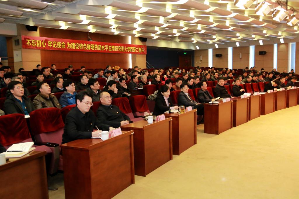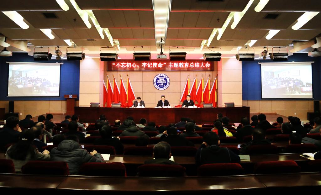 1月13日下午,学校在市北校区图书科技楼报告厅召开“不忘初心、牢记使命”主题教育总结大会。会议深入学习贯彻习近平总书记关于主题教育的重要论述,学习贯彻中央和省委主题教育总结大会精神,回顾总结学校主题教育开展情况和经验成果,对进一步巩固和深化主题教育成果进行安排部署。