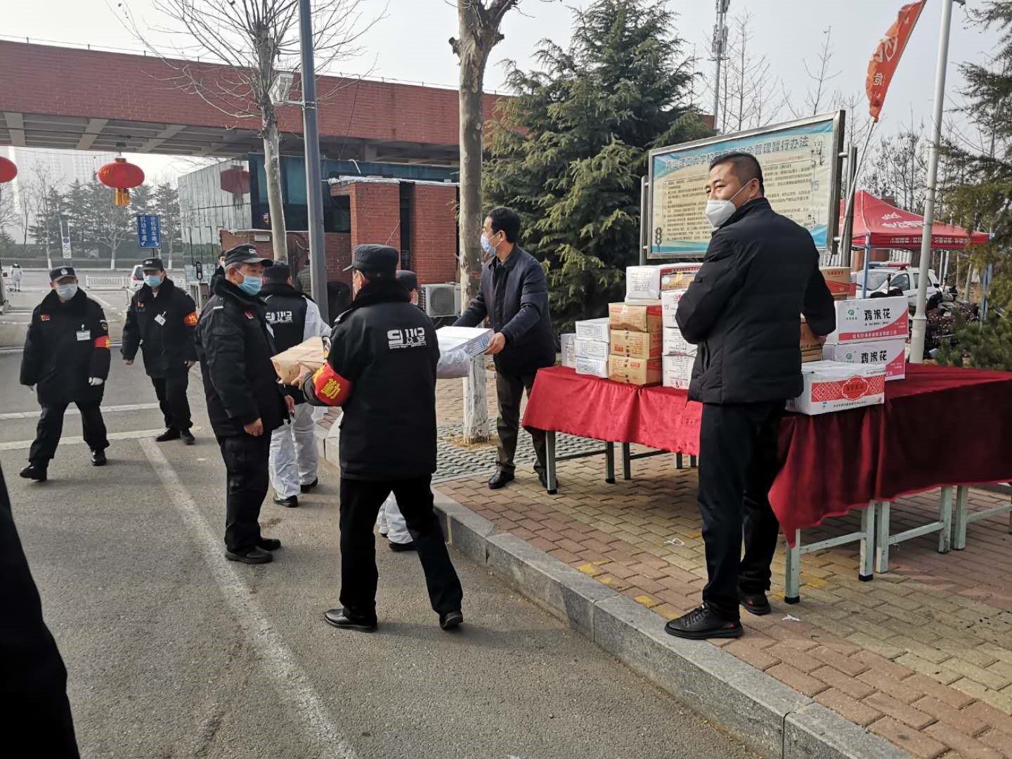 2月8号,校党委常委、副校长、防控工作领导小组办公室主任齐德义代表学校为一线安保人员送去了生活物资。后勤处、保卫处共同走访慰问了春节期间坚守在防疫岗位的一线安保工作人员。