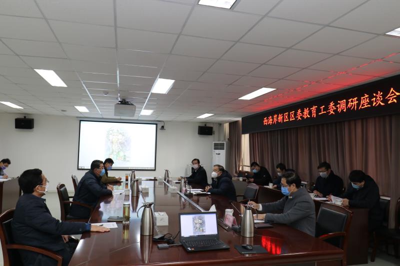 王亚军对逯鹰部长一行来校调研表示欢迎,向新区工委区委和教育工委一直以来对学校建设发展给予的关心支持表示感谢,并介绍了学校当前新冠肺炎疫情防控工作情况、新校区二期工程项目建设进展情况、长江路老校区搬迁与主校区转移计划安排以及学校建设发展中面临的有关问题与困难情况。
