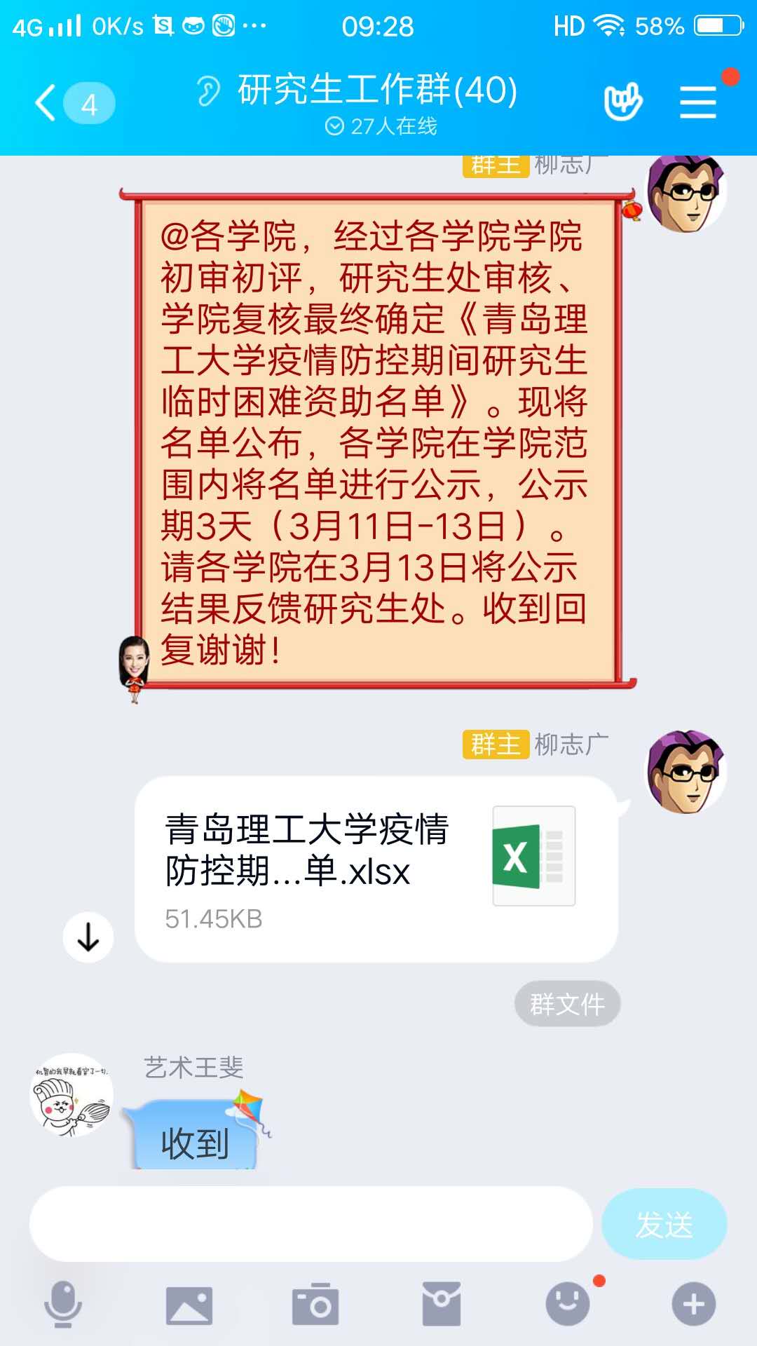 根据教育部精神和山东省统一要求,制定学校《关于做好疫情防控期间研究生临时困难资助工作的通知》,积极宣传动员,精心组织策划,通过学生申报、学院初审、研究生工作部(研究生处)审核、学院复核、学校公示等环节,确保公平公正,累计资助2020届困难毕业研究生56人,发放资助金4.4万元,有效缓解了困难毕业生就业压力。