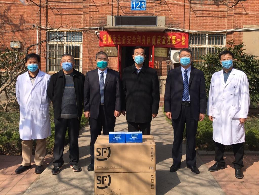 4月3日上午,中国农业银行青岛城阳支行行长侯登平、副行长倪晓阳一行来到市北校区,向学校捐赠疫情防控物资口罩4000只,支持学校解决防控物资困难。校党委常委、副校长、防控工作领导小组办公室主任齐德义代表学校接受银行捐赠。