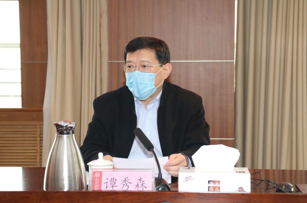 校长谭秀森主持会议并讲话