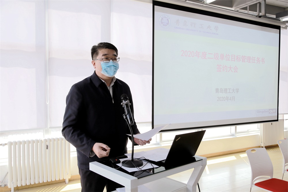 王亚军指出,目标责任书各项指标体现了学校第三次党代会,省属高校分类考核全覆盖指标体系,党委行政2020年工作要点的要求,各二级单位主要负责同志要带头、带领认真研究目标责任内容,进一步深化对目标管理考核工作的认识,坚持把目标管理考核作为调动干部积极性的重要手段,站在学校事业发展大局的角度,认真、深入谋划具体措施、具体行动方案,找准切入点和突破口,实现单位的本职工作与目标任务的无缝对接,确保年度目标任务圆满完成。