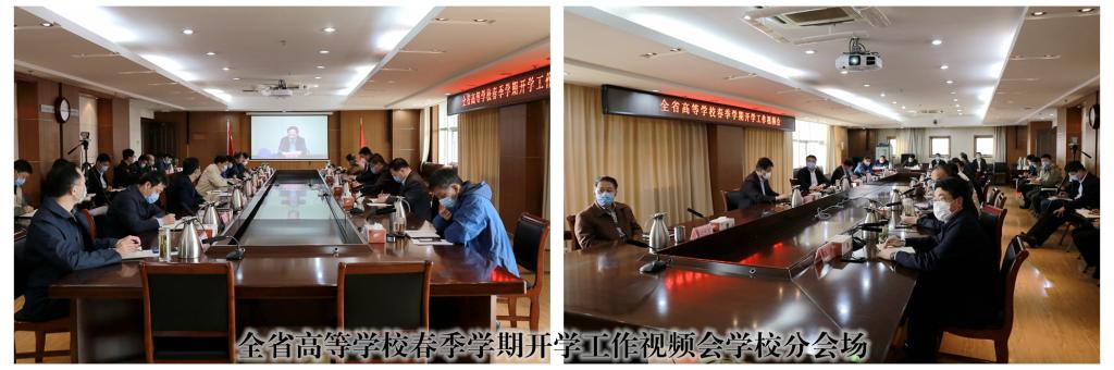 视频会议结束后,学校第一时间召开新冠肺炎疫情处置工作领导小组会议,学习贯彻全省高等学校春季学期开学视频会精神,对做好学校2020年春季学期开学工作做出具体部署安排。