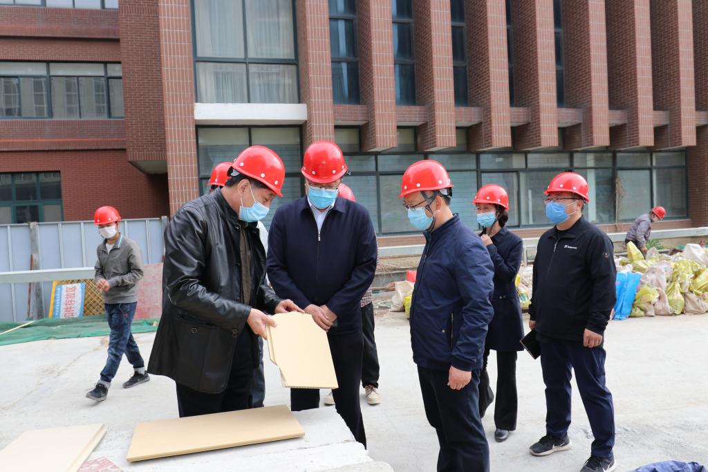 在项目现场,王亚军先后实地查看了建筑外墙与陶板色彩效果情况以及室内安装、墙面粉刷和地面铺装进展情况,并就办公室门选型定色、报告厅与会议室装修事宜提出了要求。在现场办公会上,听取了新校区建设办公室副主任、基本建设处处长孙海涛关于各项目建设进展情况汇报,就统筹做好项目建设相关工作进行了调度部署。