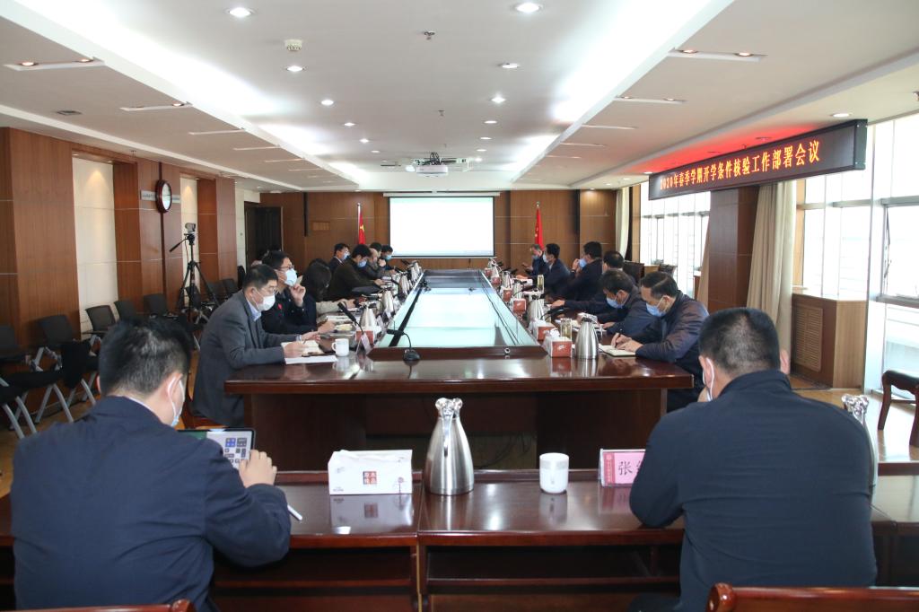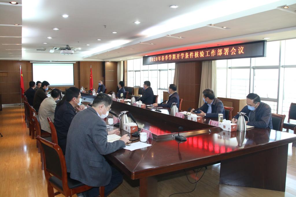 会上,谭秀森带领学校新冠肺炎疫情处置工作领导小组成员对照《山东省高等学校2020年春季开学条件核验细则》的13个核验项目、46项核验指标,逐项进行梳理和自查。