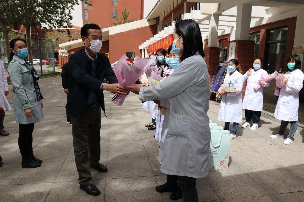 在“国际护士节”来临之际,党委常委、副校长齐德义,党委常委、副校长王在泉分别带队前往嘉陵江路校区和市北校区校医院,看望慰问全体医护人员,向坚守一线的“白衣天使”献上鲜花和节日祝福。