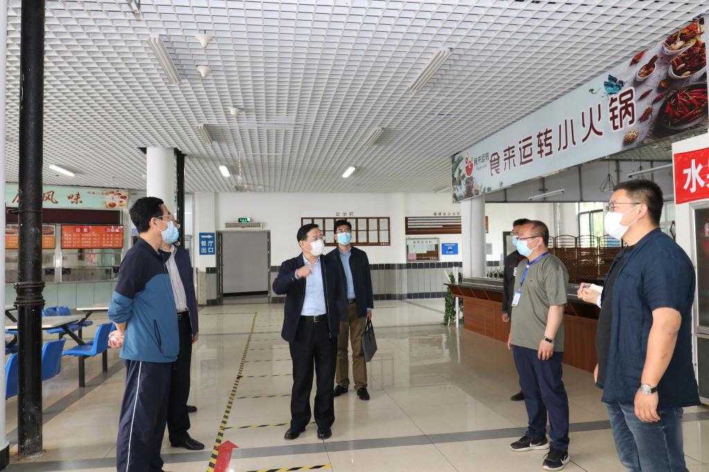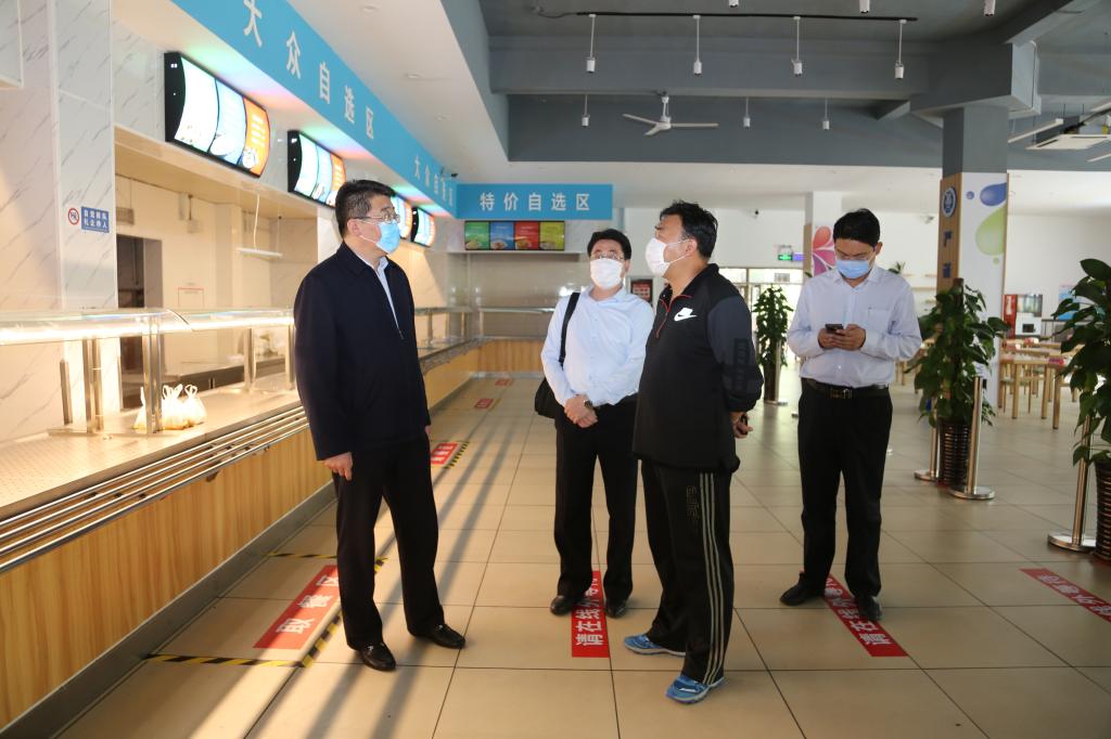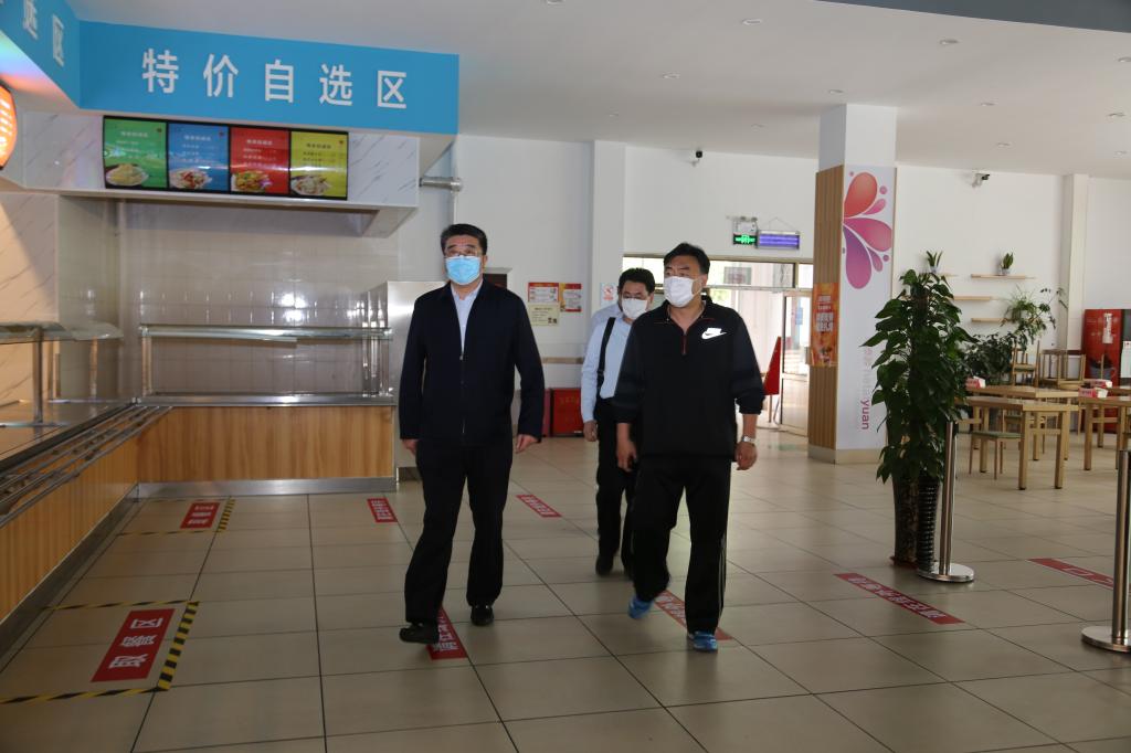 在学生餐厅,王亚军、谭秀森等学校领导先后察看了就餐区、后厨加工区、分餐区环境卫生、原材料准备及防控措施落实情况,听取了工作人员关于学生返校复学餐饮保障措施情况汇报,强调要切实做好返校师生的餐饮保障工作,制定科学细致的餐饮保障方案,根据学生返校情况适时调整,坚决把好安全卫生与饭菜质量关,确保师生饮食健康与安全。