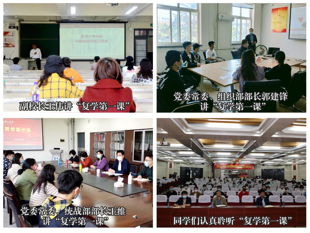 一个个鲜活的人物故事,一串串详实的数据事例,一组组经过深度提炼的育人元素,学校“复学第一课”以“疫情大考中的中国自信和理工担当”为题,紧紧围绕疫情防控主题,将理论与现实贯通融合,把疫情大考转化为一堂生动的爱国主义和理想信念教育课、科学的生命健康教育课、鲜活的社会责任教育课,带领学子感受疫情特殊时期的真挚感动、必胜信心,感受时代赋予青年理工人的历史使命,教育引导同学们厚植爱国主义情怀,用行动响亮回答“奋斗担当”这一宏大时代命题。