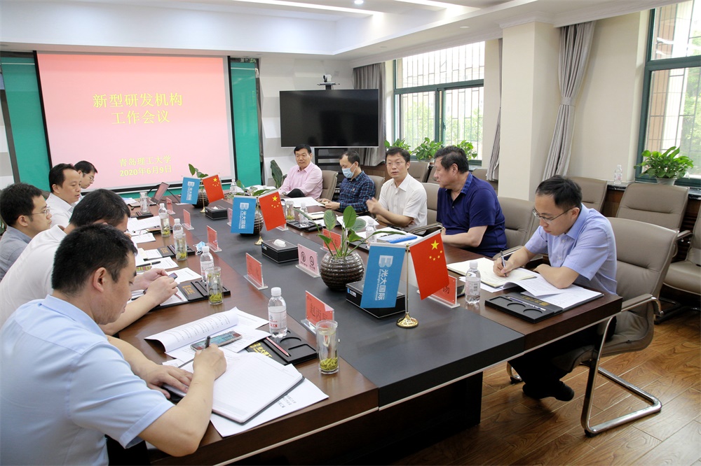 6月9日上午,学校在光大理工环境技术研究院召开新型研发机构工作会。学校党委常委、副校长于德湖主持会议。光大理工环境技术研究院、青建理工建筑工业化研究院、山东青冶节能产业研究院负责人,科技处(成果转化办公室)、科技发展集团及相关团队负责人参加了会议。