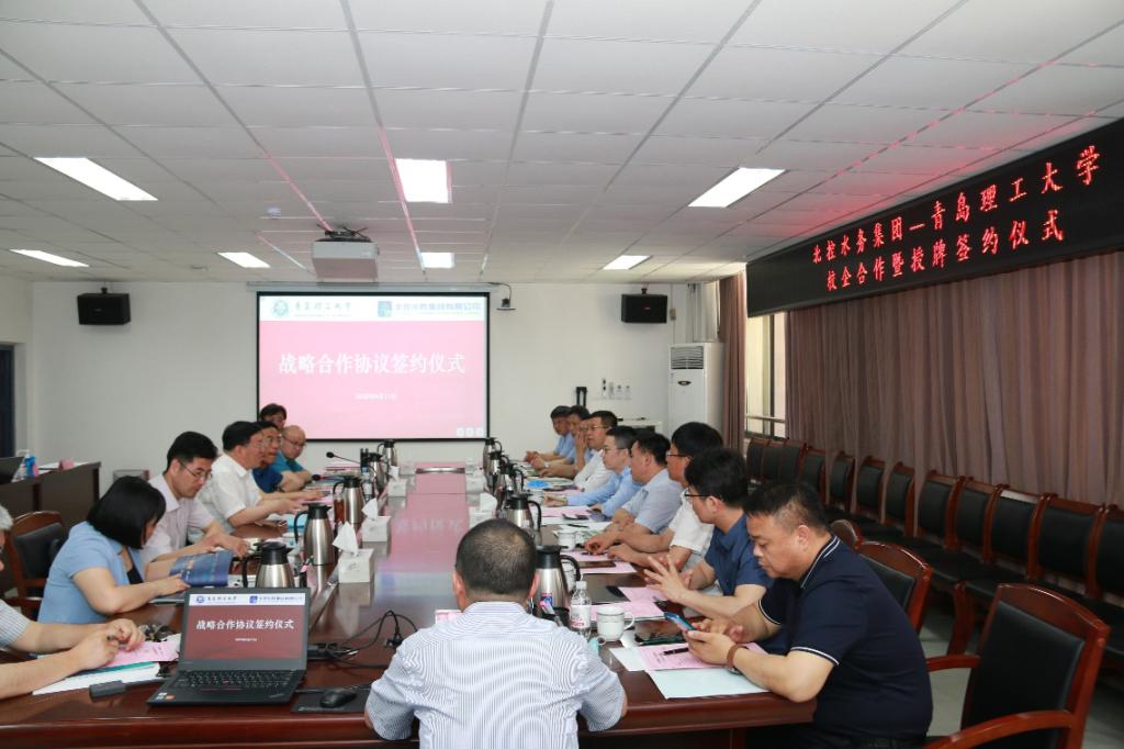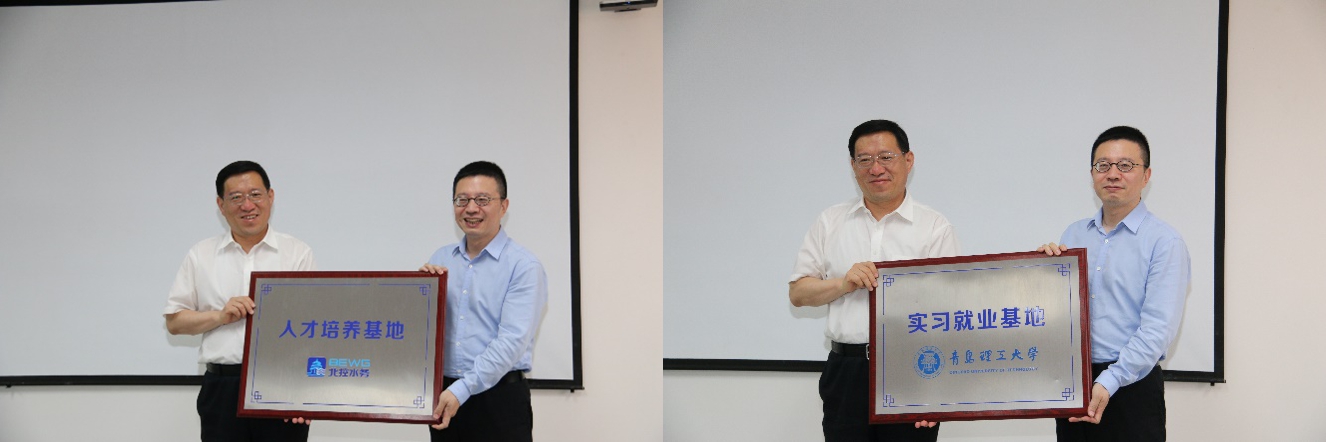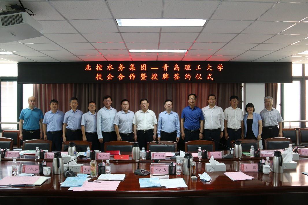 6月11日下午,北控水务集团—永利集团3044官网欢迎您校企合作暨授牌签约仪式在嘉陵江路校区现代教育中心212会议室举行。北控水务集团高级副总裁、北控水务学院院长于立国,校党委副书记、校长谭秀森出席仪式,分别致辞并共同助签合作协议签署。党委常委、副校长齐德义主持仪式。北控水务集团运营管理中心副总经理汪力,人力资源中心副总经理、北控水务学院副院长冀广鹏,东部大区副总经理魏寿廷,东部大区人力资源总监龙小兵,水环境研究院研发部部门经理史彦伟,山东业务区副总经理丁曰堂,山东业务区副总经理崔明池,山东业务区临沂区域总经理崔显平,山东业务区综合部副经理季英奎,以及学校校长办公室、教务处、环境与市政工程学院有关负责同志参加仪式。