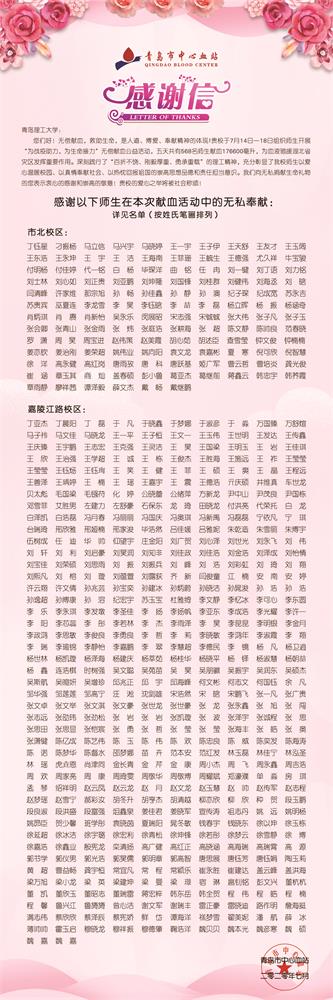 受新冠肺炎疫情防控和持续暴雨天气等因素的影响,湖北省采血量大幅下滑,血液库存告急,病人急需用血,湖北省日前向山东省发出了血液调配支援请求。青岛市中心血站接到山东省调配血液志愿湖北的通知后,向我校致函请求协助组织无偿献血。学校接到通知后高度重视,第一时间进行了部署,于7月14日至18日连续5天在全校开展了“为战疫助力,为生命接力”无偿献血活动。