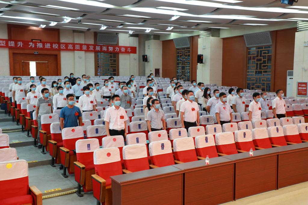 下午14:30,大会在雄壮的国歌声中隆重开幕。校区管理办公室主任范学工作题为《奋力抢抓机遇、加快转型提升,为推进校区高质量发展而努力奋斗》的校区工作报告。