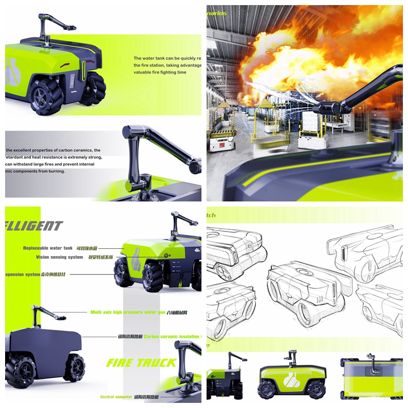 近日,山东省第三届“省长杯”工业设计大赛落下帷幕,由我校艺术与设计学院朱宏轩指导,产品设计专业学生毕东岭设计的《智能无人消防车》获高校“新星奖”。