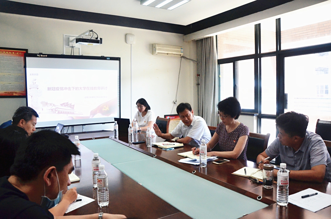 为进一步巩固拓展“不忘初心、牢记使命”主题教育成果,贯彻落实党委班子成员基层党支部联系点制度及支部建设规范提升行动工作方案,推进党建和教学科研工作同频共振,相向而行,7月27日,党委常委、副校长王伟到联系支部——管理工程学院工程土地教工支部参加题为“新冠疫情冲击下的大学在线教育研讨”的主题党日活动。学院班子成员及工程土地教工党支部全体党员参加了本次活动。活动由支部书记薛雅伟主持。