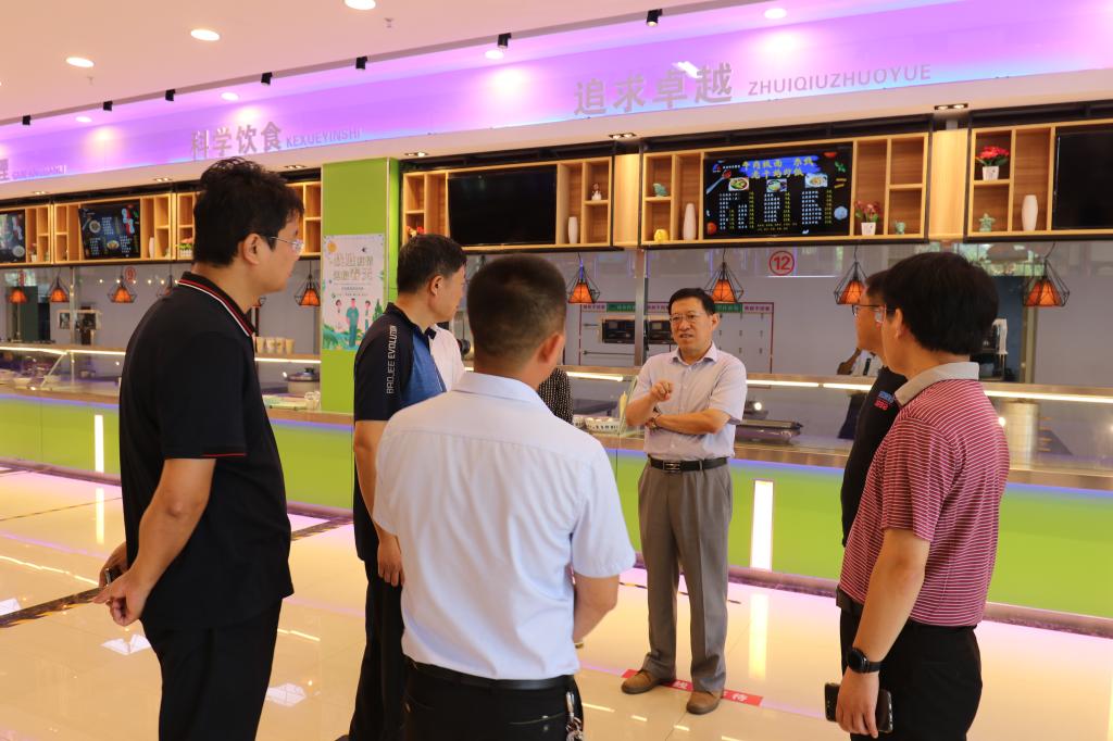 谭秀森一行先后深入实训中心、荷园餐厅、东区学生公寓、教学楼、校医院和中央院系区等重点区域和部位,实地检查指导师生生活保障、教学保障、安全保障等工作落实情况。在实训中心,听取了中心建设情况和开学准备工作情况汇报,就加强实训中心建设与实训教学工作提出了意见建议;在荷园餐厅,实地察看了餐厅运行保障情况,并与用餐学生亲切交谈,询问对餐饮服务的评价意见;在东区学生公寓,察看了浴池建设运行情况,看望慰问了义务劳动的青年学生志愿者;在教学楼,深入教室查看了环境卫生与多媒体设备运行情况,就老旧设备检修更新进行了安排;在校医院,详细察看了就诊登记信息,了解了疫情防控物资储备情况和医务人员值班安排,叮嘱全体医务人员履职尽责,为师生生命安全与身体健康保驾护航;在中央院系区管理工程学院和商学院,察看了空间布局利用和搬迁后工作运行情况,就空间资源效能发挥和文化氛围营造提出了指导意见。