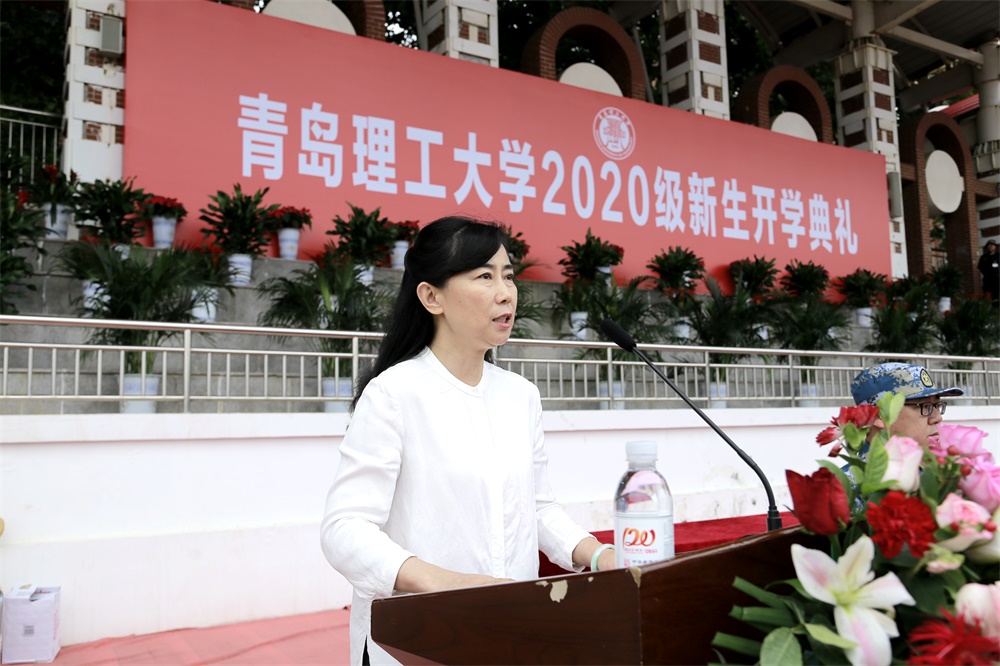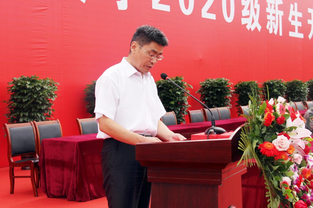 校团委书记高洁宣布军训编制。军训教官、2020级新生代表分别发言。