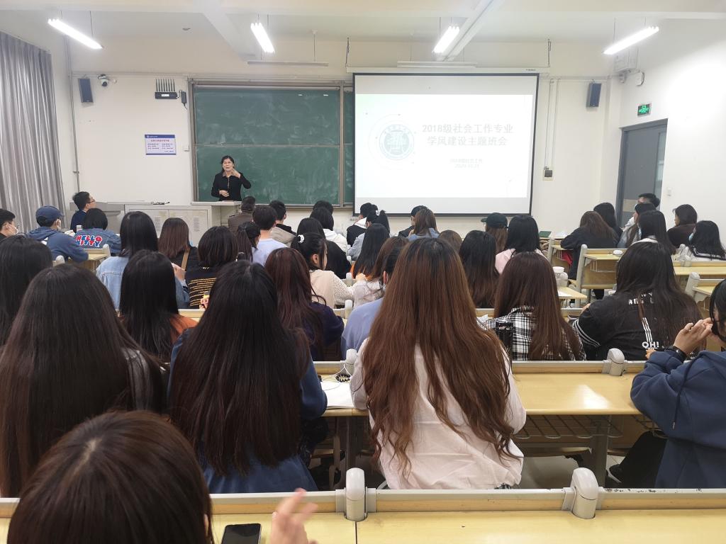 为贯彻落实学校的学风建设实施方案,进一步加强学风建设,将学院学工“三大工程”之土壤工程筑牢做实,10月21日下午,人文与外国语学院2018级社会工作专业在主教学楼B207召开“学风建设”主题班会,校党委常委、统战部部长王维、人文与外国语学院党总支书记王新、党总支副书记王振参加,会议由班主任杨书胜主持。