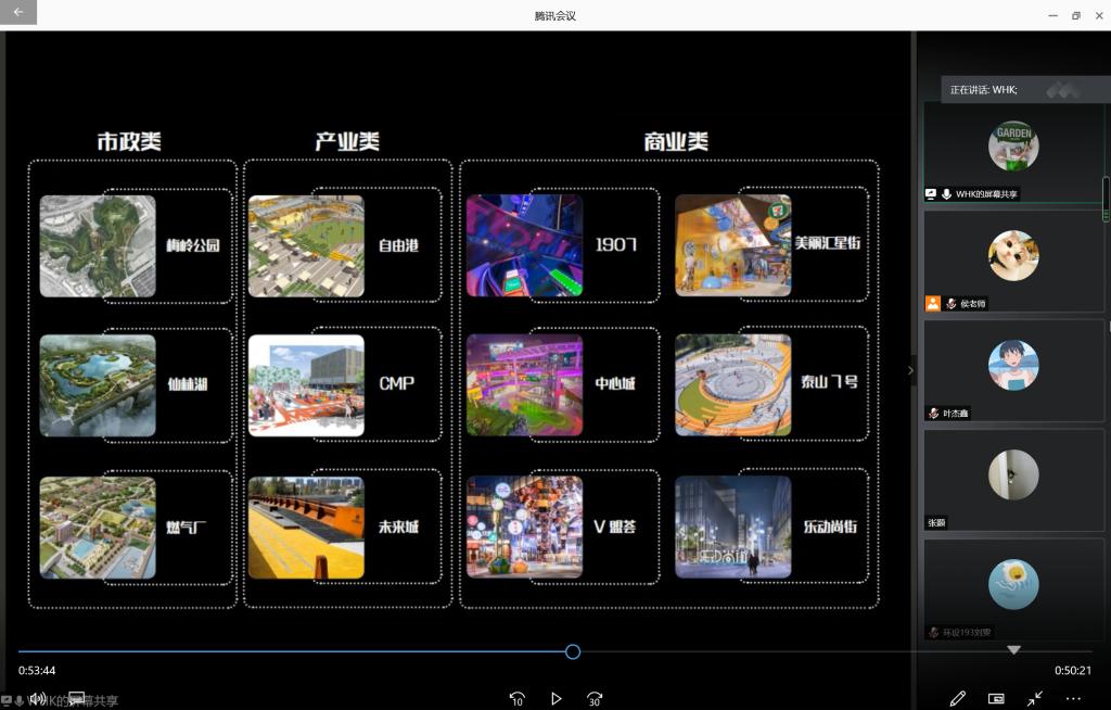 课程的第二个环节,由奥雅设计青岛分公司高级设计师魏洪凯为同学们做精彩的专业分享。魏洪凯是我校2009级同学,时隔十多年,他与学弟学妹们共聚《设计原理》的在线课堂,通过对园林规划设计流程的讲解以及两个优秀设计的案例的分享,带来了环境设计专业最前沿的设计理念和设计动态。本次分享的两个案例一个是青岛台柳路1907商街景观设计,一个是鲁能领秀商业室外公共空间景观设计,这两个项目都是现在热度比较高的城市商业空间景观更新项目。通过魏洪凯的案例分享,让同学们对课堂理论知识有了进一步的认识,使书本上的知识更接地气了。