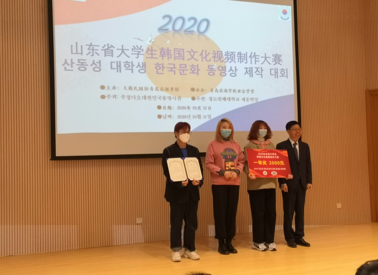 10月31日,由大韩民国驻青岛领事馆主办的2020年山东省大学生韩国文化视频制作大赛在青岛滨海学院国际学术交流中心圆满结束。
