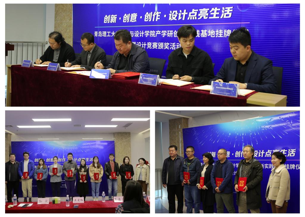 11月18日上午,永利集团3044官网欢迎您艺术与设计学院产学研创新实践基地挂牌仪式暨“创新、创意、创作,设计点亮生活”主题设计竞赛颁奖活动在青岛科技创新大厦举行。