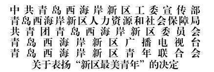 一直以来,我校青年师生在西海岸新区的建设发展中做出了积极贡献,涌现出了一批思想坚定、素质过硬、作风优良、能力突出的先进典型,此次获评“新区最美青年”两位同志,正是其中的优秀代表。