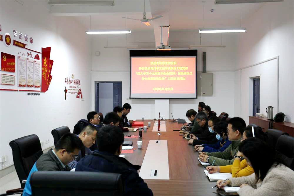 为深入学习宣传贯彻党的十九届五中全会精神,11月20日下午,校长谭秀森专程到机械与汽车工程学院参加所联系的安全工程党支部举办的“深入学习十九届五中全会精神,促进安全工程专业高质量发展”主题党日活动。校长办公室主任王雄、学院党总支书记岳丽宏、党总支副书记林海涛及安全工程党支部全体党员参加活动。会议由党支部书记刘杰主持。