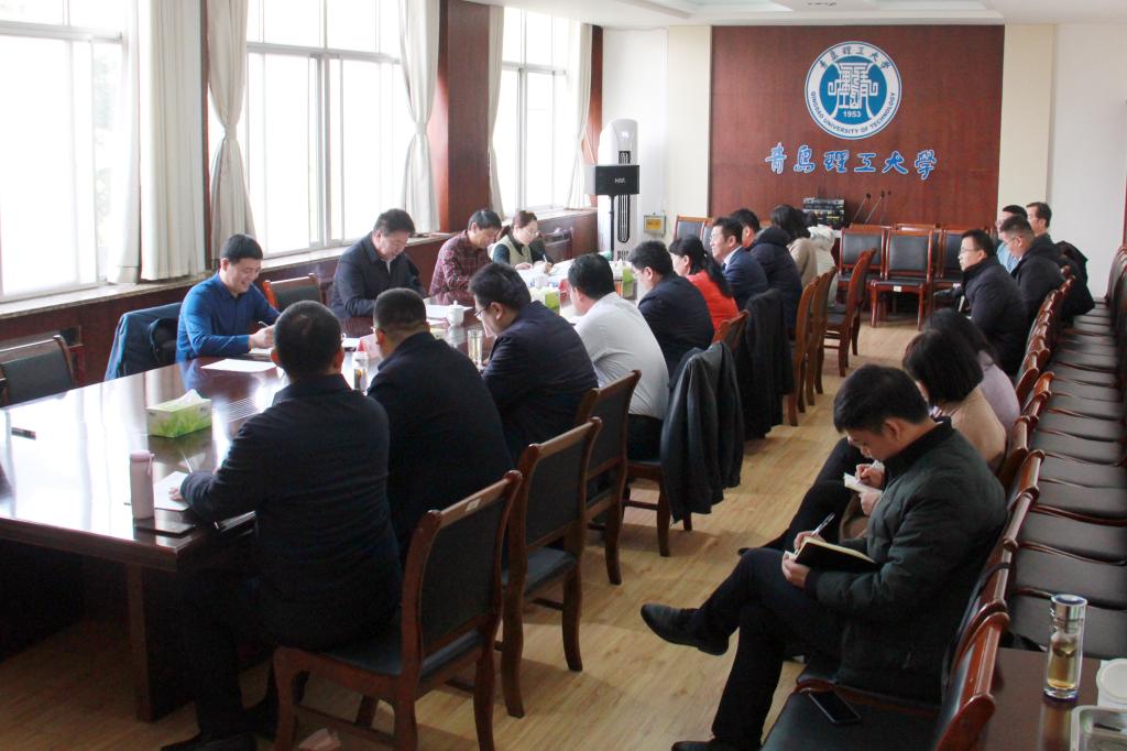 在办公楼202会议室,临沂校区党委常务副书记李国涛对临沂校区2020年度党建主体责任及意识形态工作完成情况向督导组进行了汇报。