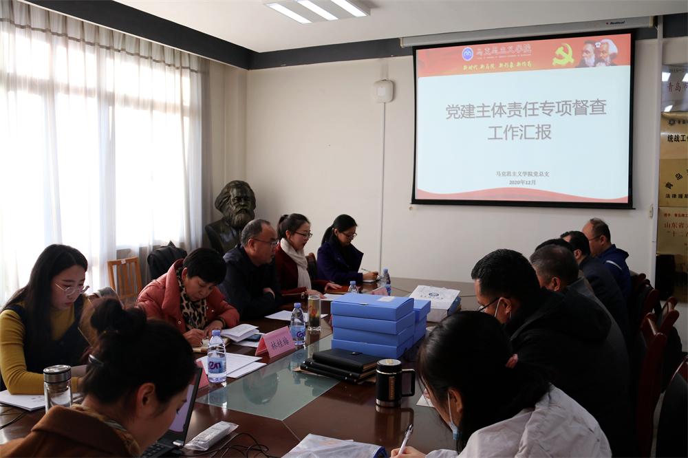 12月3日下午,党委常委、宣传部部长陈伟带领学校“落实党建主体责任专项督查暨意识形态校内巡察”第十一小组工作人员,到马克思主义学院进行督导巡察。学院党总支书记王菁华和学院党总支领导班子部分成员参加督导巡察工作。