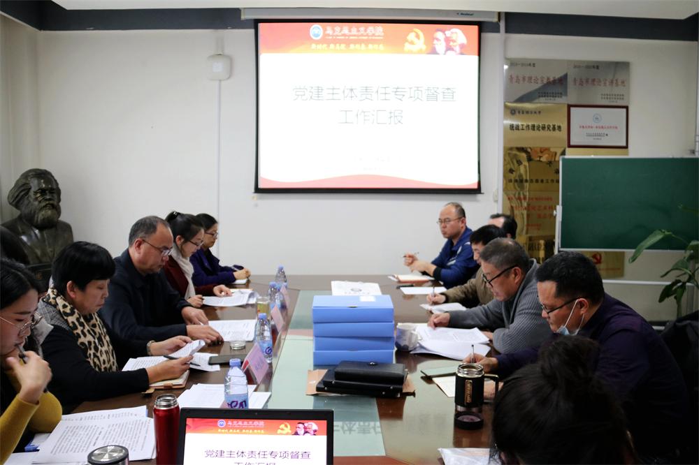 根据考核要求,陈伟首先介绍了本次党建主体责任督导检查工作的目的及流程。随后,学院党总支书记王菁华从政治建设基本情况、党建建设基本情况、思想建设基本情况、组织建设基本情况、人才工作基本情况、党风廉政建设基本情况、意识形态主体责任落实情况、党建品牌创建等方面详细汇报了一年来学院党建工作建设情况。