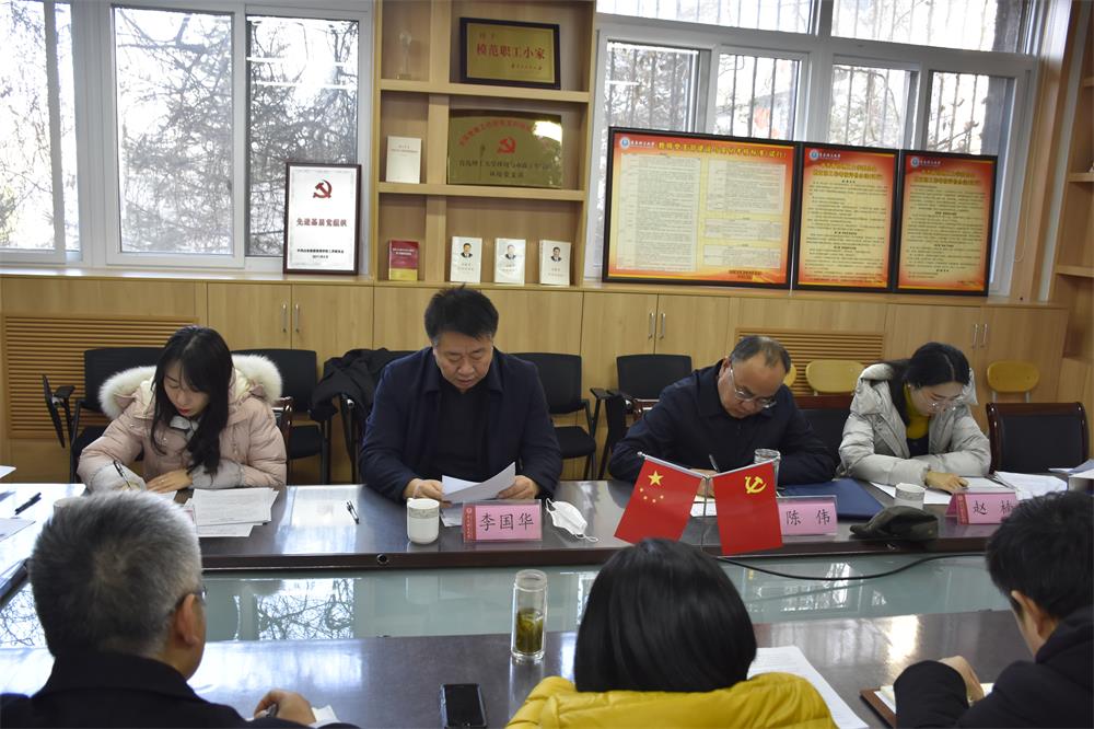首先,马莉围绕立德树人根本任务和学院内涵建设,从落实从严治党主体责任、学院党组织基本情况、政治建设、思想建设、组织建设、作风建设、落实党政工作要点等方面汇报了2020年学院党建工作和意识形态工作完成情况,介绍了学院党总支“牢记初心使命、建设一流环境”主题实践活动主要成效,并从支部工作品牌化建设、支部共建方面剖析了存在的不足和努力方向。