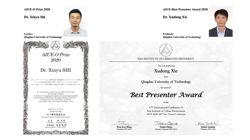 会上,亚洲城市环境学会公布了2020年学术论文奖,来自中国、日本和韩国的三名学者获奖。我校建筑与城乡规划学院石新羽老师以“A Didactic Pedagogical Approach toward Sustainable Architectural Education through Robotic Tectonics(通过机器人建构学实现可持续建筑教育的教学方法研究)”的成就荣获此奖项,并在主会场发表了基调演讲。随后,百名学者参与了各分会场的发表交流,论文均被出版收录至同名国际期刊《Journal Asia Urban Environment》。