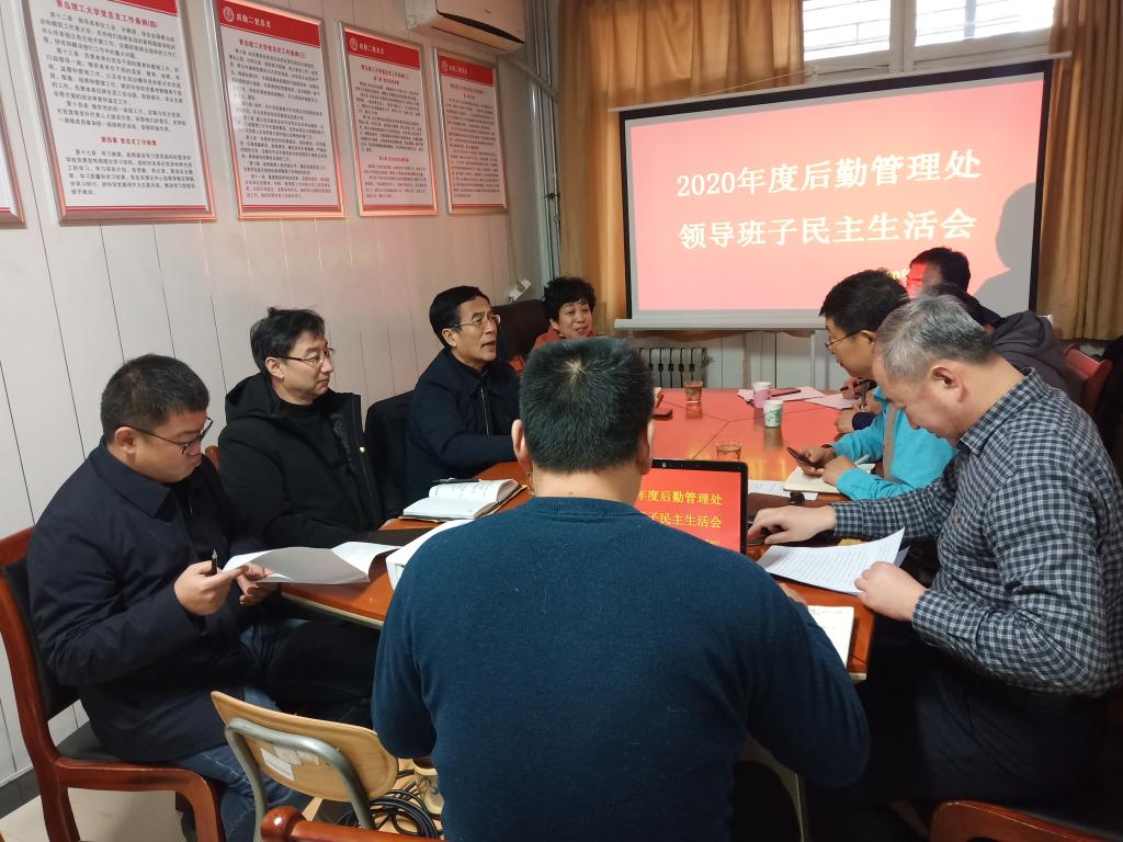 根据校党委《关于认真开好2020年度党总支(分党委)民主生活会的通知》文件精神,1月14日下午,后勤管理处在嘉陵江路校区6号学生公寓106房间召开了2020年后勤管理处(后勤一党总支、后勤二党总支)班子民主生活会。党委常委、副校长齐德义到会指导,校第五督导组成员林桂梅、王庆生列席督导,后勤管理处全体班子成员参加。会议由后勤管理处处长金玉谟主持。