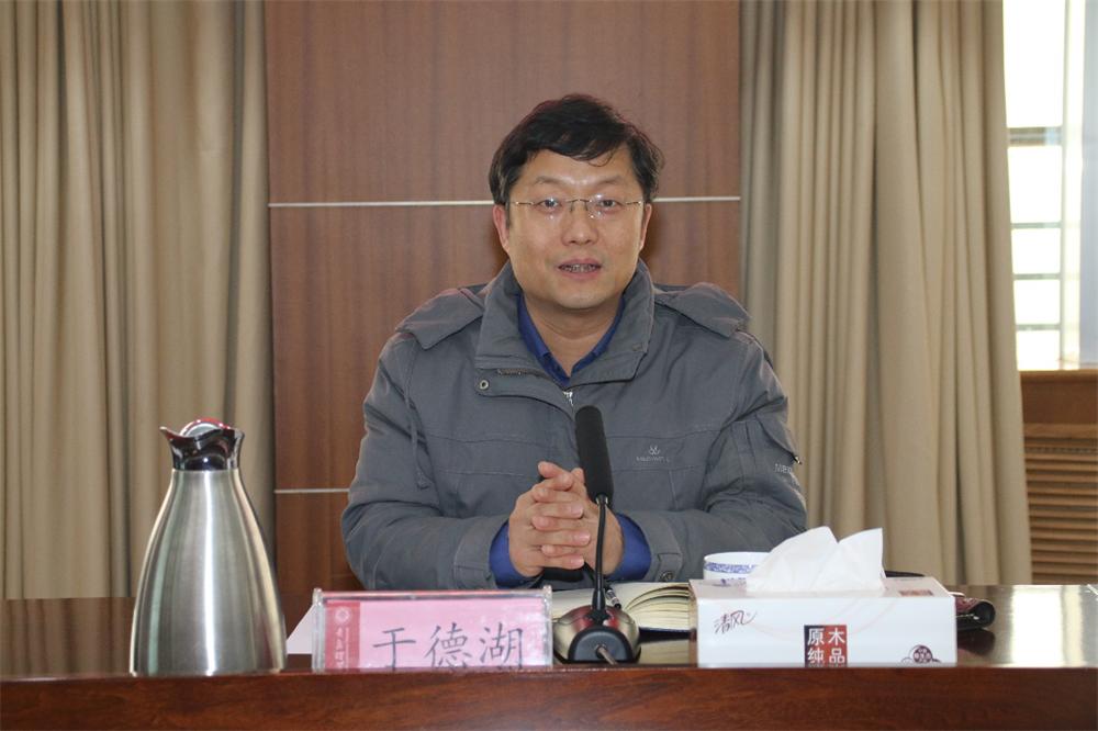 于德湖在总结讲话中对2020年全校科研工作取得的成绩给予高度肯定,对各部门、学院对科研工作中的大力支持和全体教师深度参与付出的辛勤努力表示感谢。