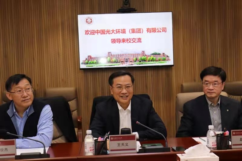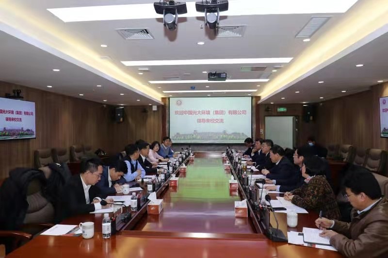 3月2日上午,中国光大环境(集团)有限公司董事会主席王天义、总裁特别助理兼绿色科创总裁赵彬,带领安环部总经理陶俊杰,绿色科创总裁助理肖诚斌、李义华,综合管理部总经理助理孙彤舟,绿色科创科技发展部副总经理罗智宇,绿色科创焚烧所副所长胡利华等一行10人来校考察交流。学校党委书记王亚军,党委副书记、校长谭秀森,党委常委、副校长于德湖陪同考察座谈。