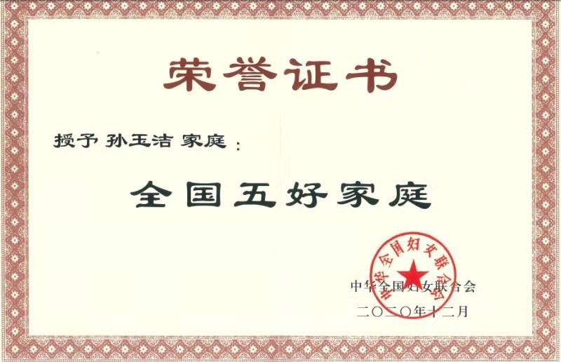 日前,全国妇联第十二届全国五好家庭等先进评选揭晓。我校孙玉洁家庭获评“全国五好家庭”。