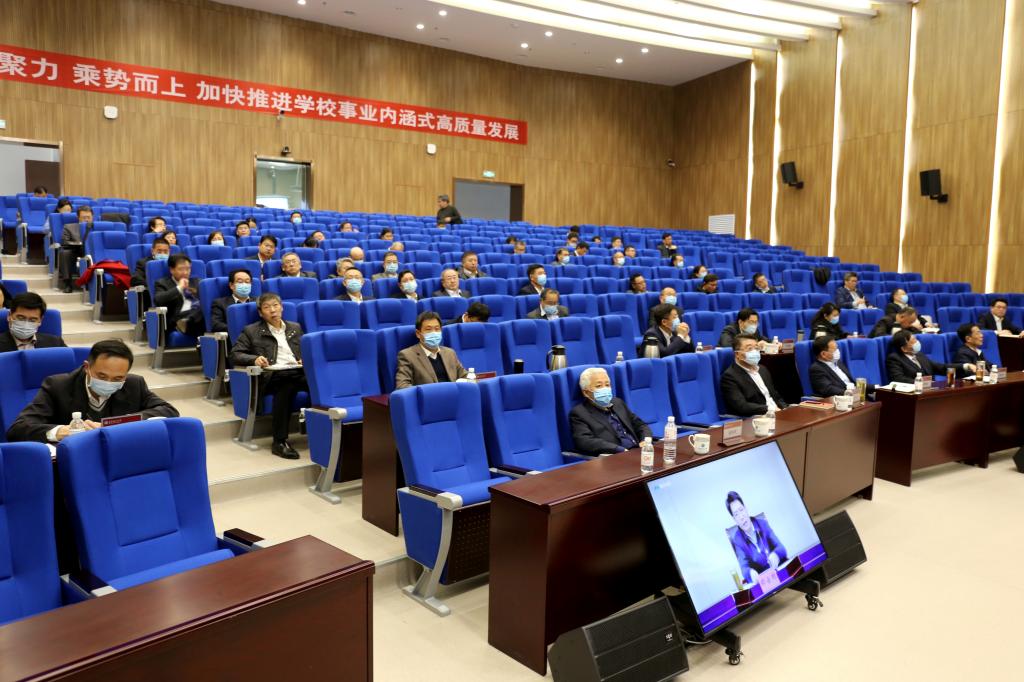 会议以视频形式召开。我校在嘉陵江路校区C2-3西报告厅设分会场,学校领导班子成员,各党总支(分党委)书记,各部门、各学院(部)、各单位主要负责同志参加了视频会议。