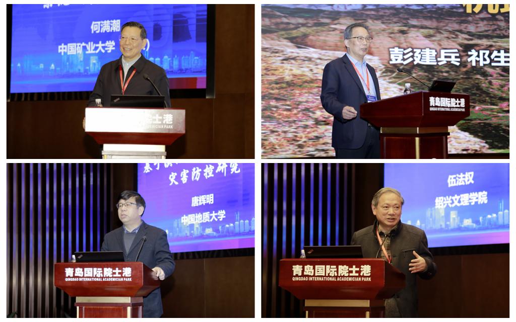 土木工程学院俄罗斯工程院和自然科学院外籍院士贺可强教授和泰山学者产业领军人才王旭春教授主持高峰论坛。何满潮院士受邀做了“中矿-华为地灾监测预警系统及其工程应用”的报告,彭建兵院士做了“黄土重大工程灾变机理与防控”报告,唐辉明教授做了“基于演化过程的滑坡地质灾害防控研究”报告,伍法权教授做了“工程岩体主动加固理念”报告。四位专家的报告高屋建瓴,阐述问题深入浅出,使参会人员受益匪浅;同时为我国地质灾害防治,尤其是重大工程建设下地质灾害防治指明了方向。针对工程地质灾害防治领域的新理论、新方法、新技术、新材料与工程实践,现场专家们各抒己见,讨论激烈,为防灾减灾的科技创新开辟了新思路,促进了我国地质灾害防治领域理论和实践的发展。