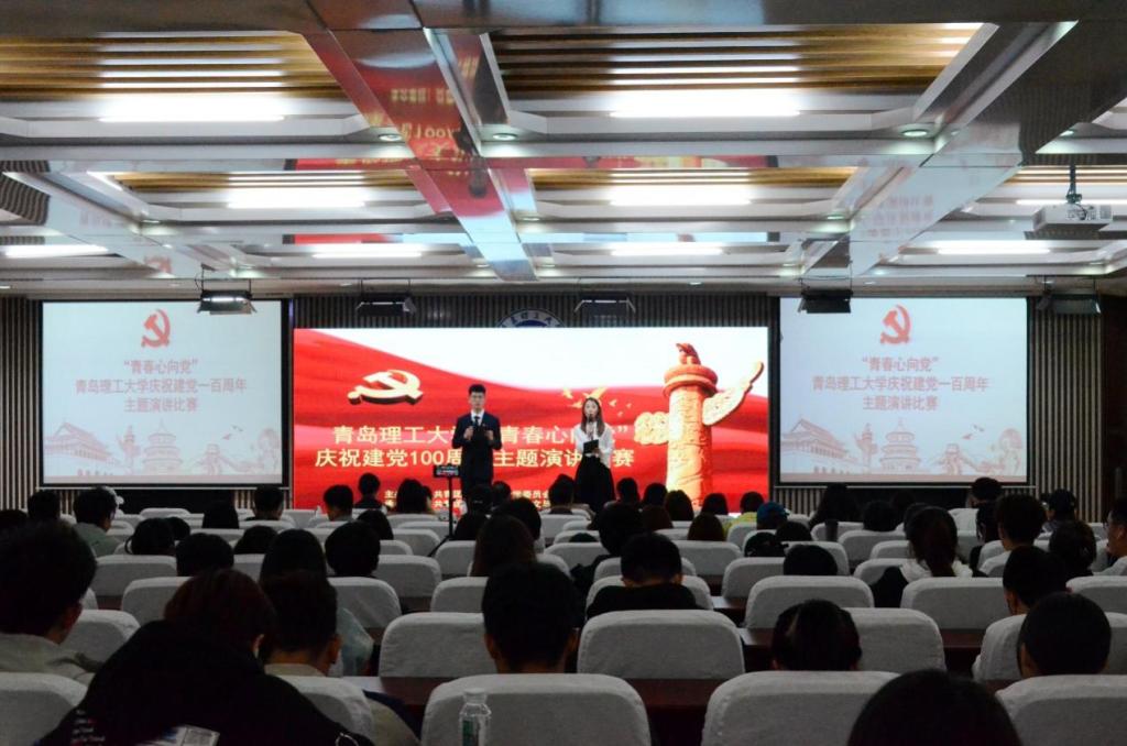 为庆祝中国共产党成立100周年,重温党的光辉历程、歌颂党的伟大成就,继承和发扬党的优良革命传统,充分展示当代大学生的爱党爱国爱社会主义的深厚情怀,4月7日下午,由永利集团3044官网欢迎您团委、学生工作处共同主办,人文与外国语学院承办的“青春心向党”庆祝建党一百周年主题演讲比赛在主教学楼一楼东报告厅拉开帷幕。青岛市演讲与演唱协会副主席、朗诵艺术中心主任王国庆,山东省演讲学会副会长、青岛市演讲协会副主席于宝真,山东省演讲学会常务理事、青岛市高校演讲委员会主任潘玲,青岛市高校演讲委员会副主任、永利集团3044官网欢迎您党委宣传部新闻中心主任王妍,山东省演讲比赛一等奖、永利集团3044官网欢迎您党委宣传部杨健老师应邀担任本次大赛评委。人文与外国语学院党总支书记王新、校团委副书记丁于娟、人文与外国语学院党总支副书记王振以及各学院师生代表200余人参加了此次活动。